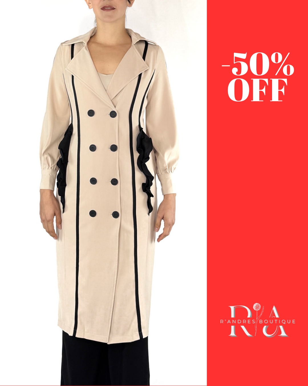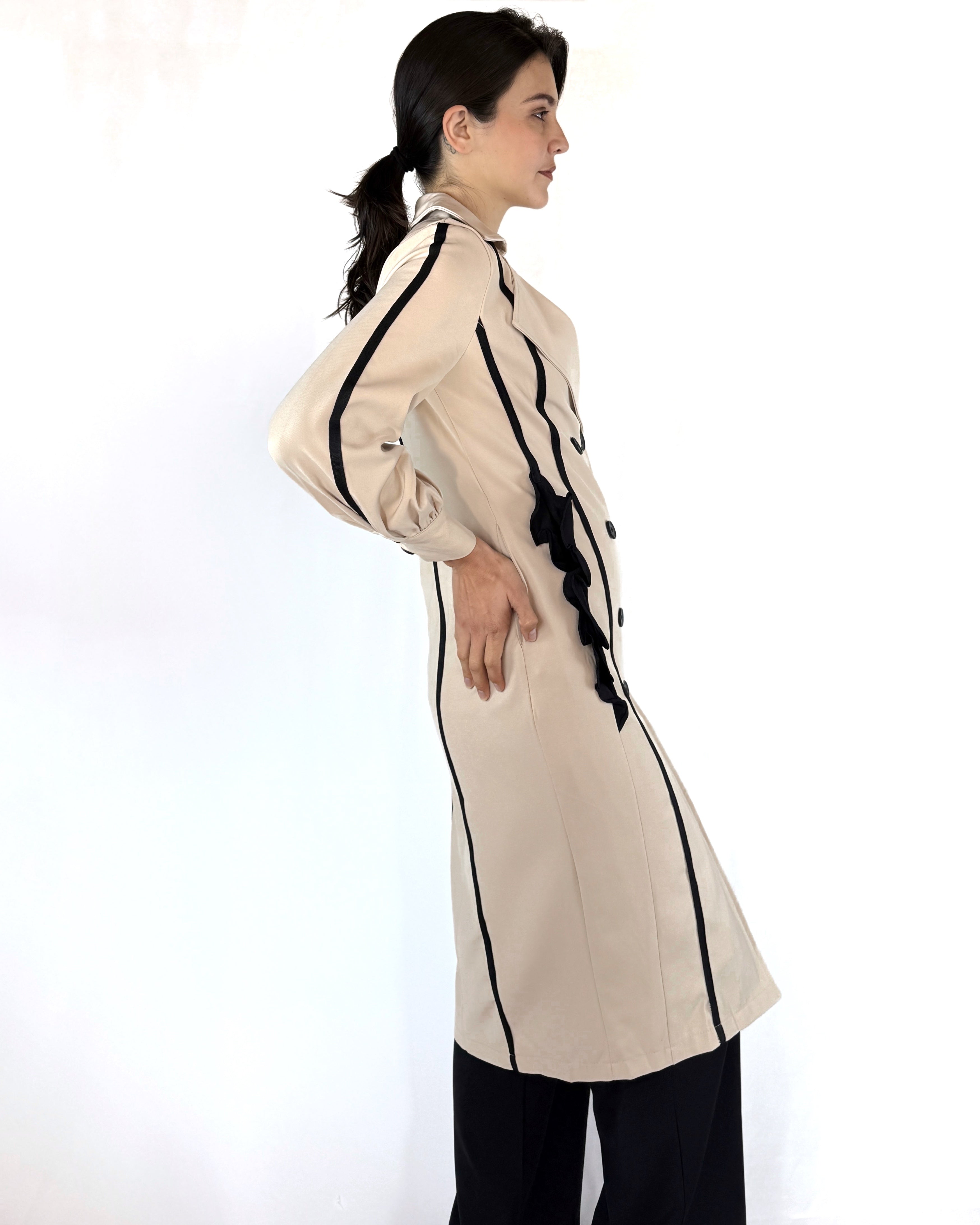 GABARDINA BEIGE CON OLANES NEGROS “Soft Clash”