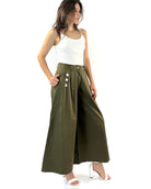 Como detalle distintivo, incorpora botones decorativos al frente que aportan carácter y un toque sofisticado al diseño. La cintura alta define y realza la silueta, convirtiéndolo en una prenda versátil ideal para looks casuales elevados o combinaciones más formales.