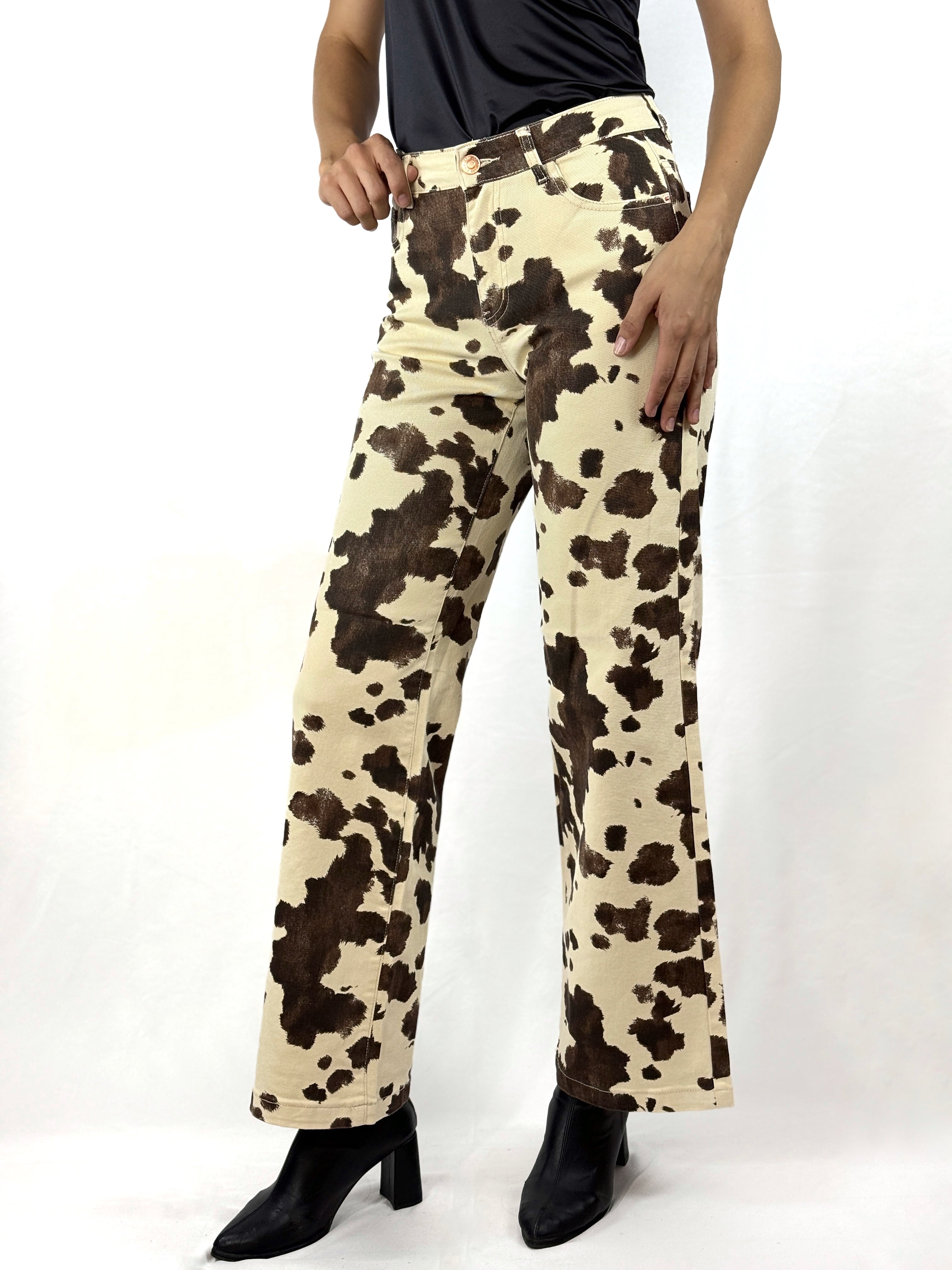 Cattle Chic - Pantalón de mezclilla con print de vaca