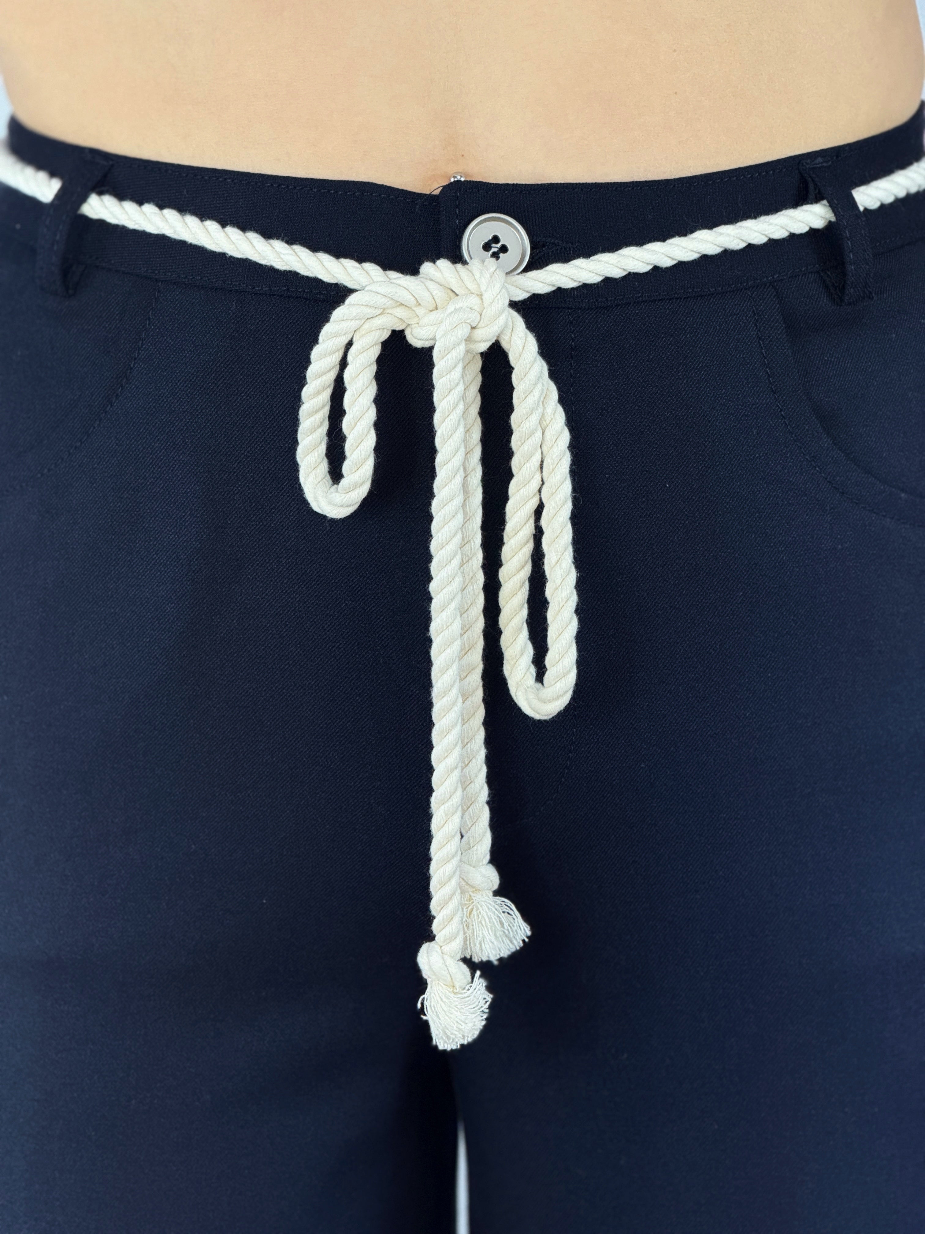 Navy Rope - Pantalón de lino azul marino