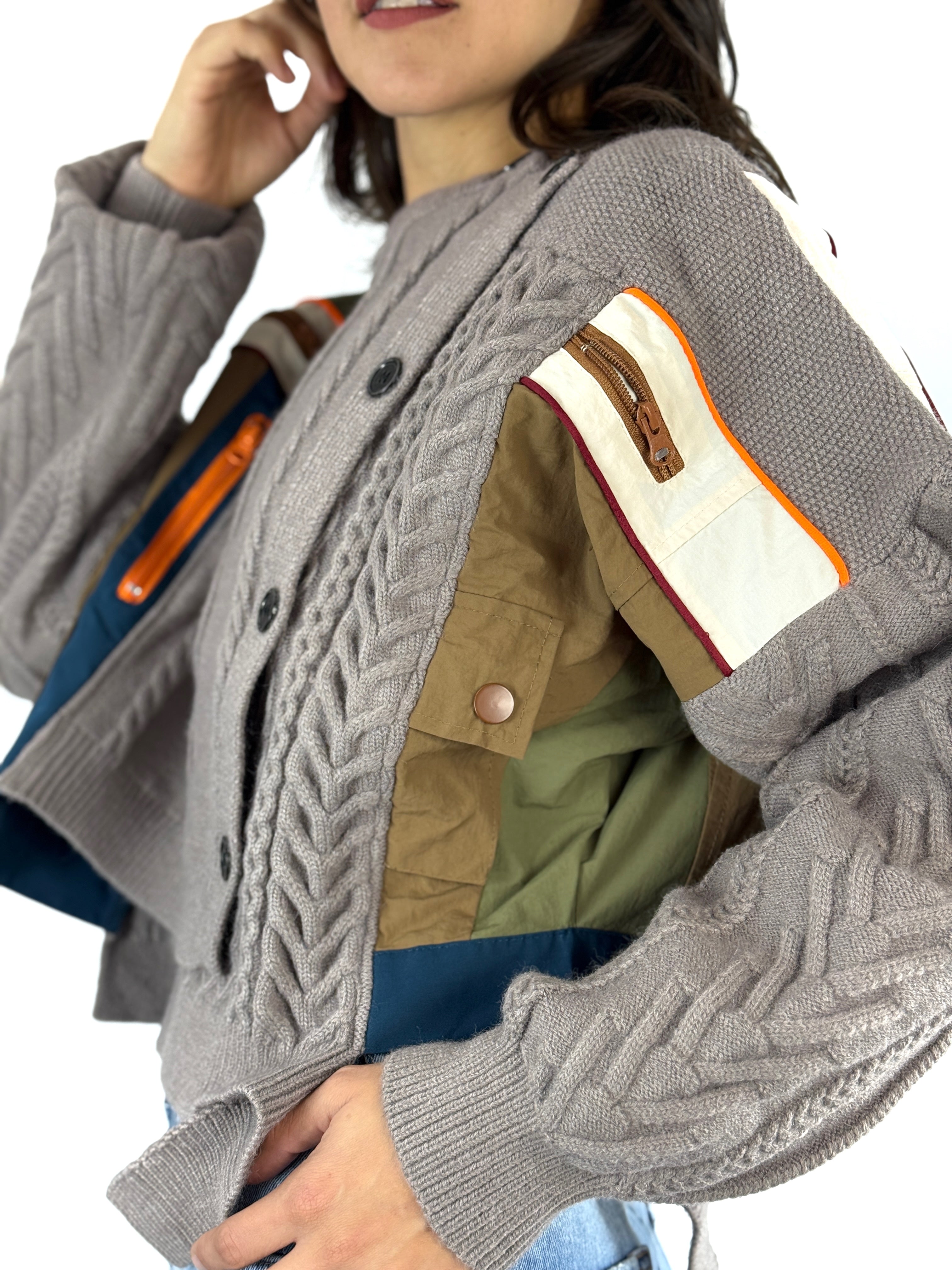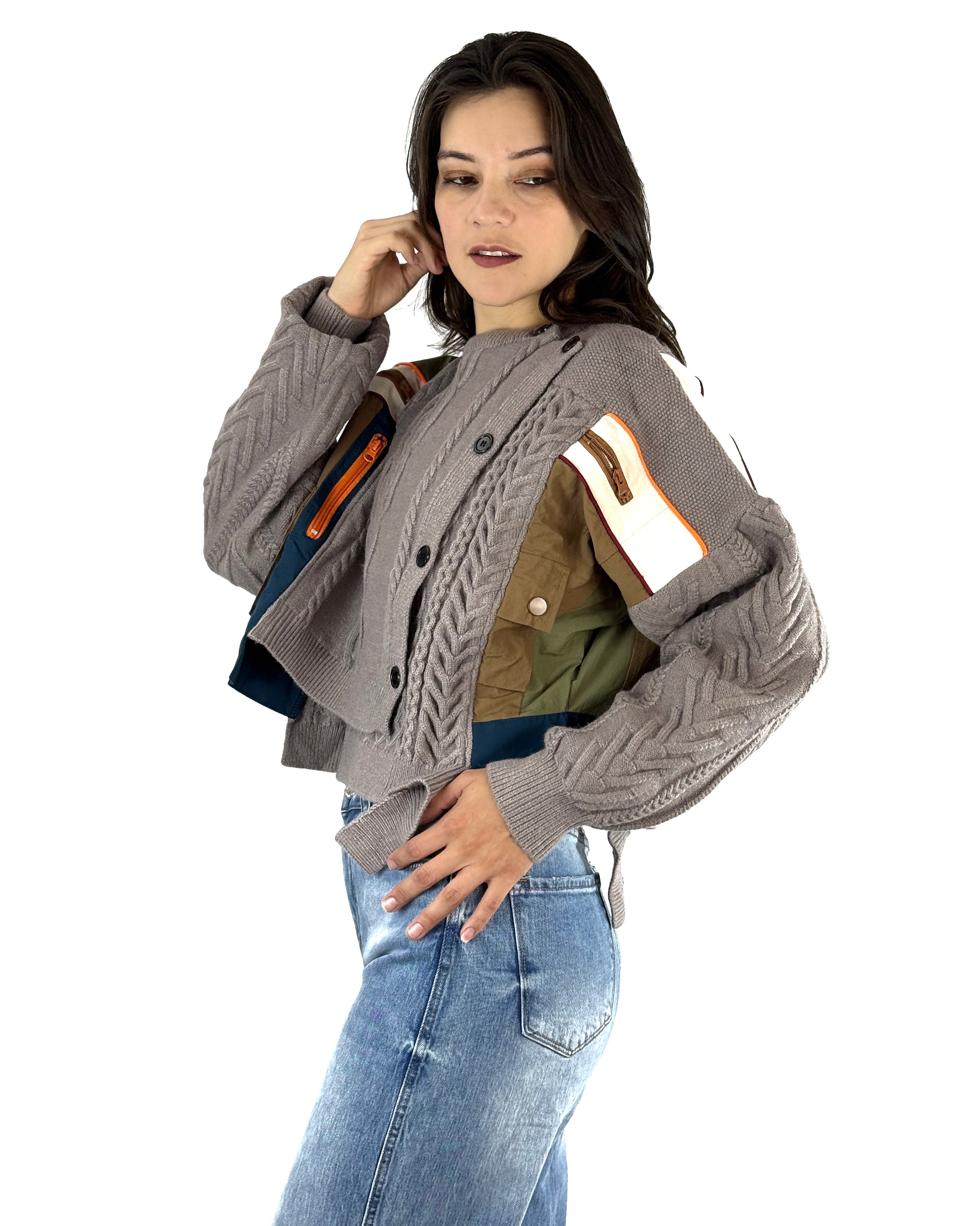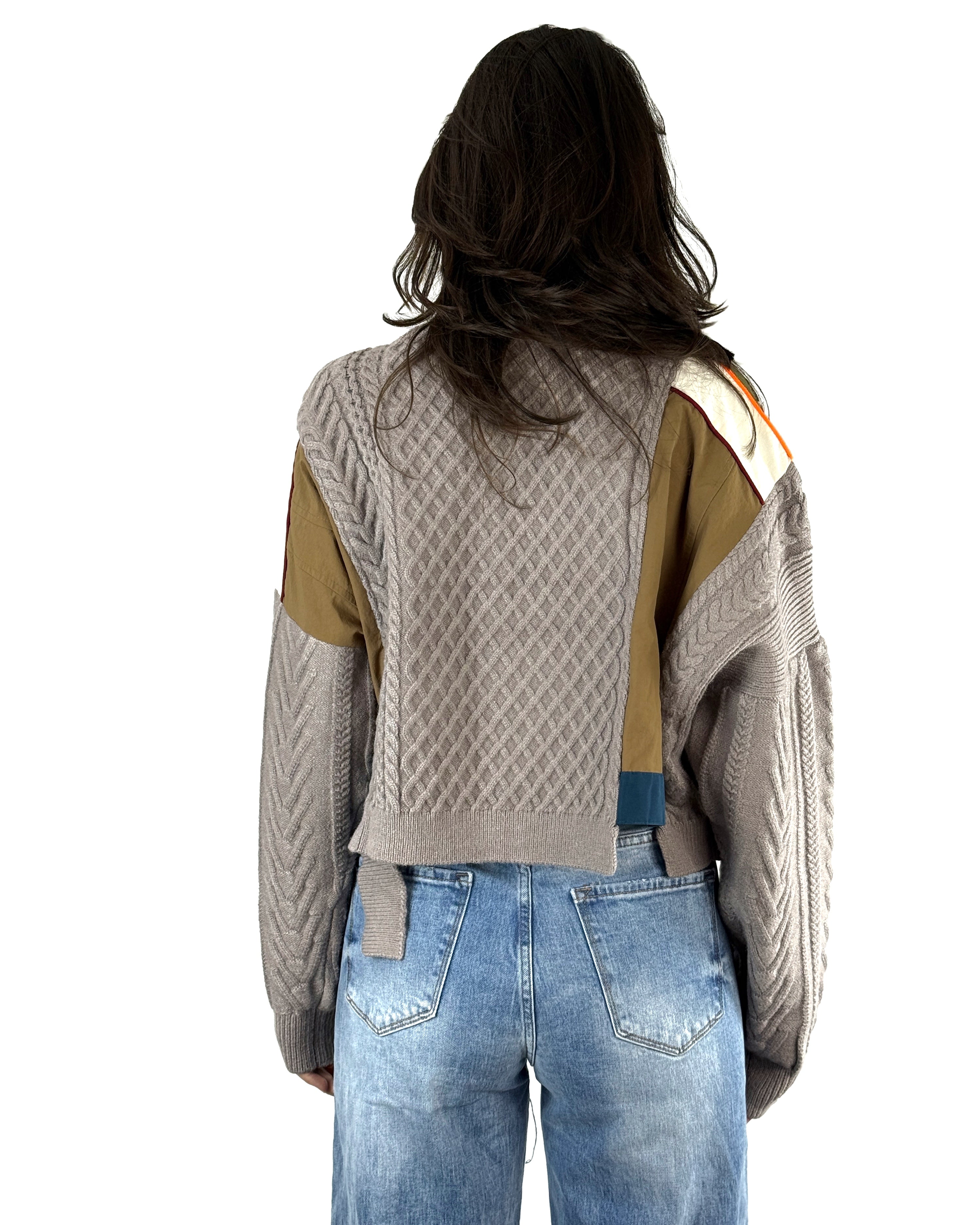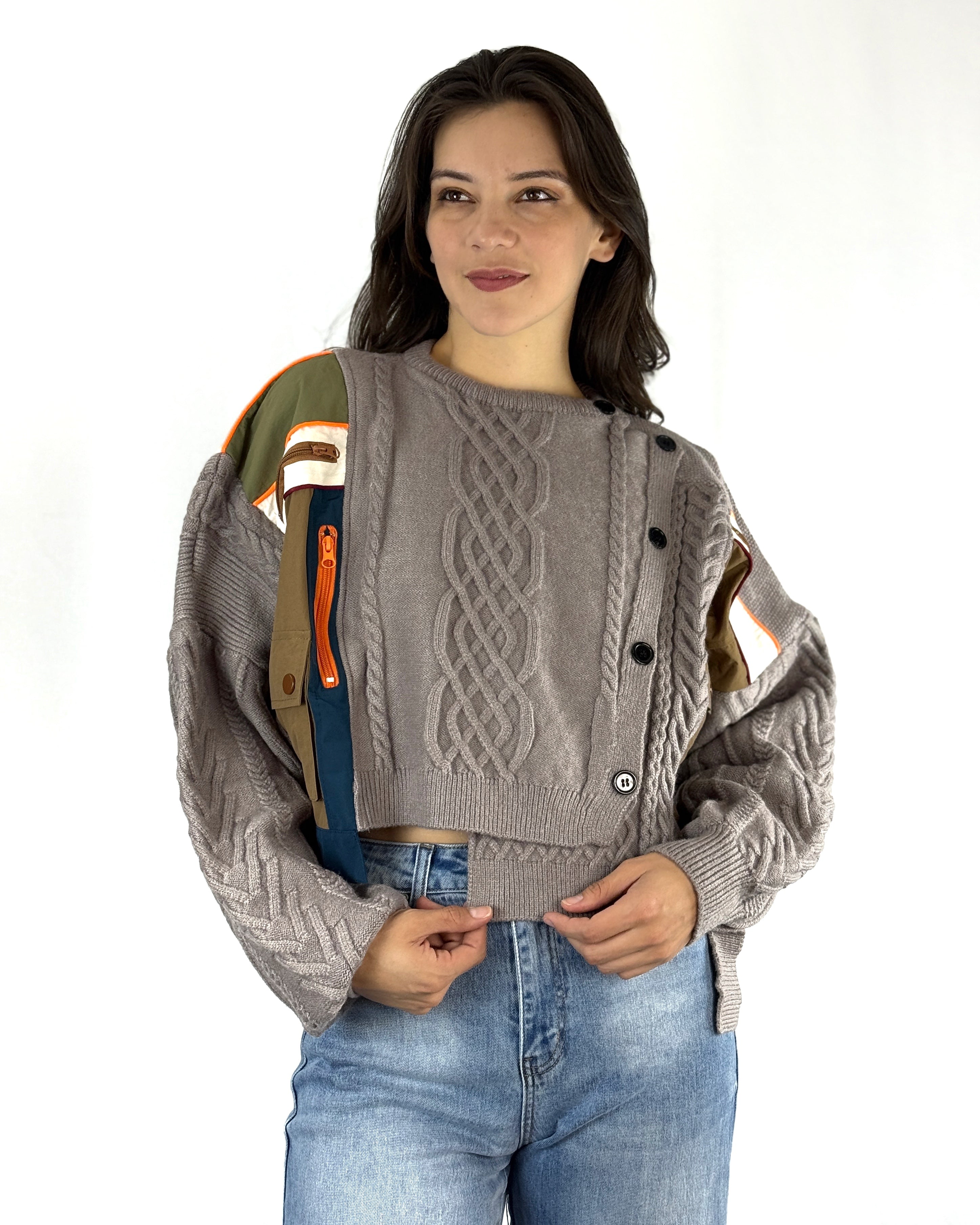Un suéter pensado para romper la rutina. Mode Éclat combina el encanto del tejido con un diseño moderno de parches estratégicamente colocados, mezclando texturas y colores que aportan dimensión y personalidad.