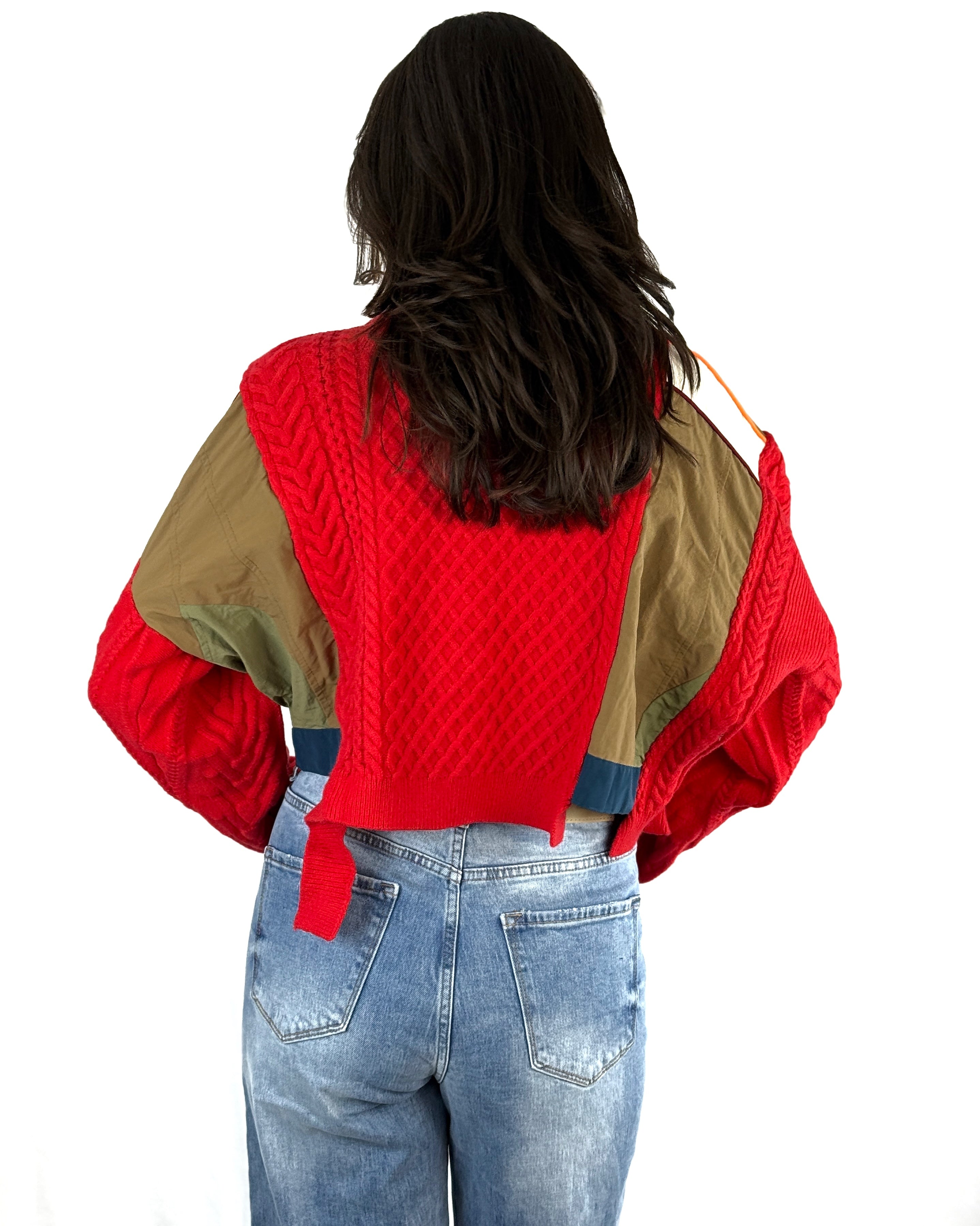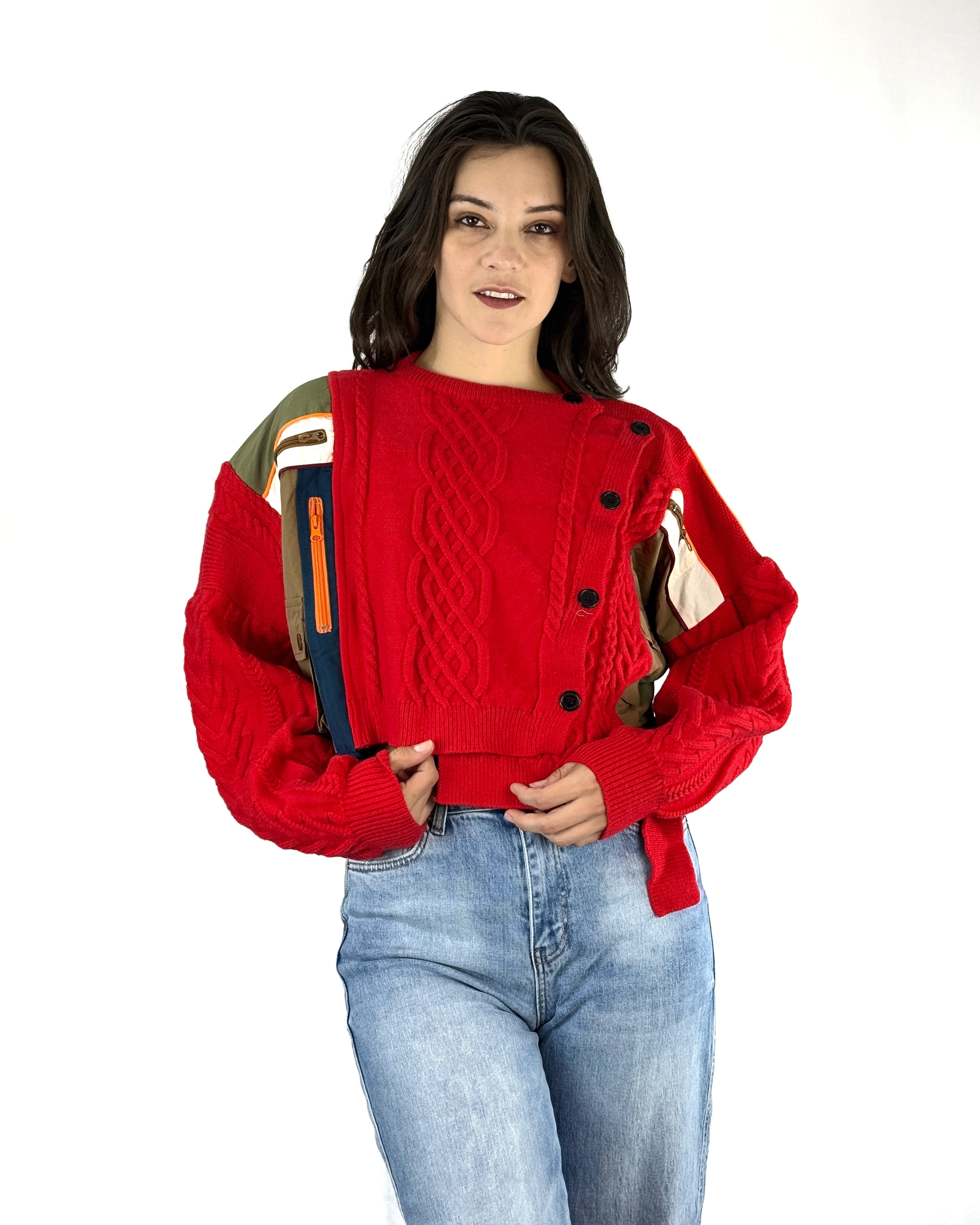Mode Éclat – Suéter Tejido Rojo Con Parches (UNITALLA)