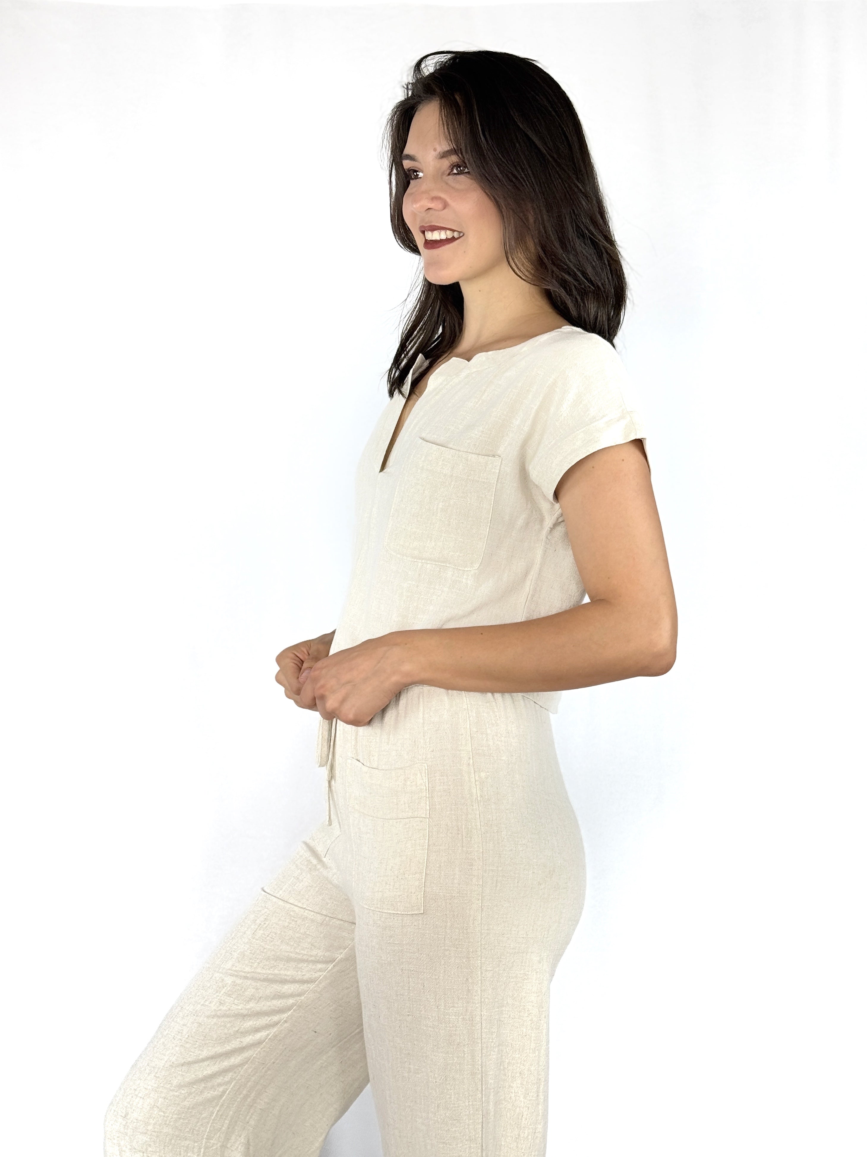 Lino Natural es un set de dos piezas con esencia relajada y silueta fluida. Su diseño minimalista, con cuello en V y mangas cortas, está pensado para quienes valoran la frescura del lino sin renunciar a la elegancia casual. Perfecto para días cálidos o escapadas al sol, este conjunto se adapta con ligereza y estilo a cada movimiento.