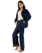 Donde el denim se encuentra con la calidez. Este set de mezclilla azul oscuro destaca por sus detalles en pana café: cuello, puños, cinturón y dobladillos, que le dan textura y carácter. La chaqueta estructurada con cinturón define la silueta, mientras que el pantalón de pierna recta suma presencia atemporal. Ideal para un look completo con identidad.