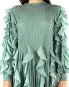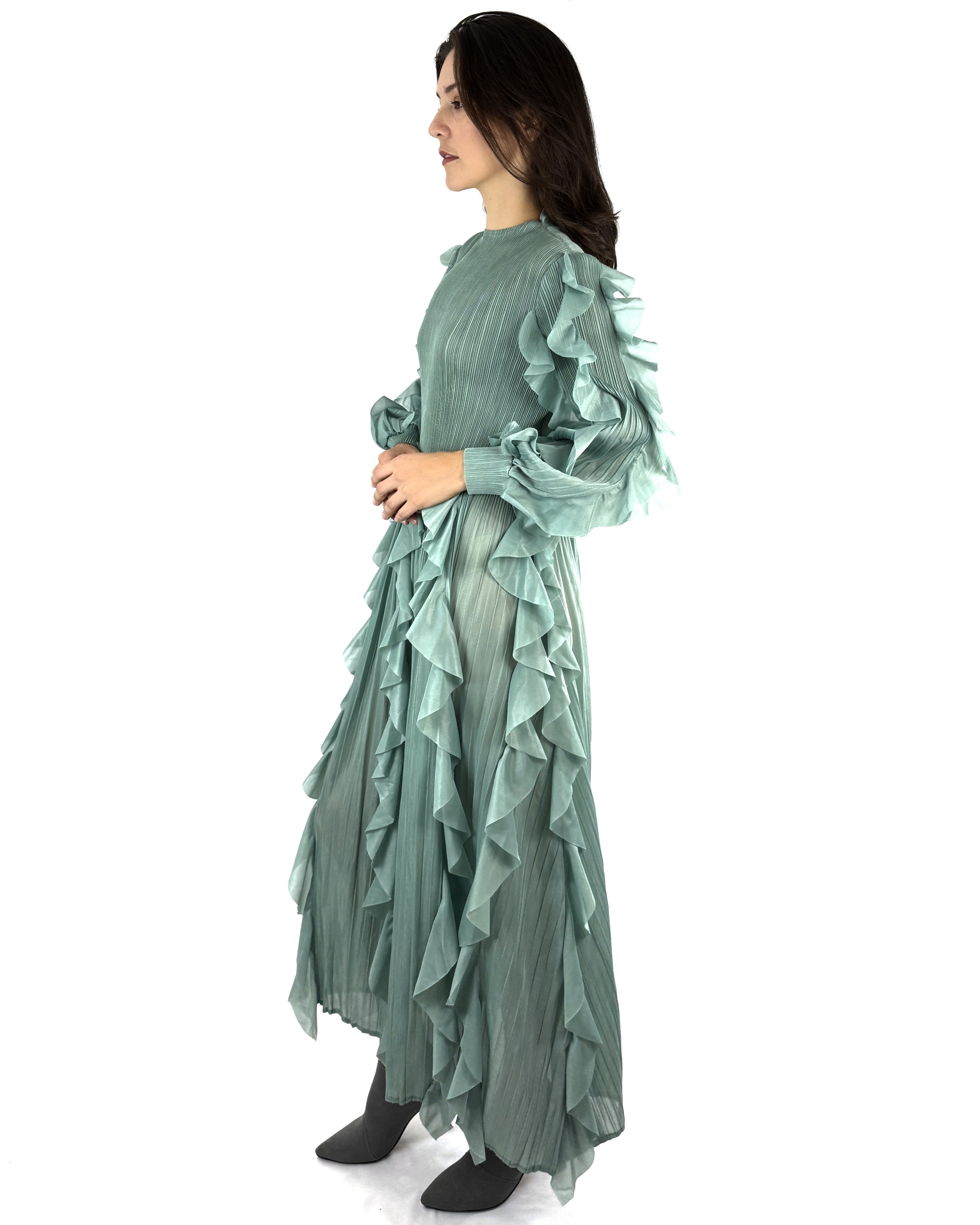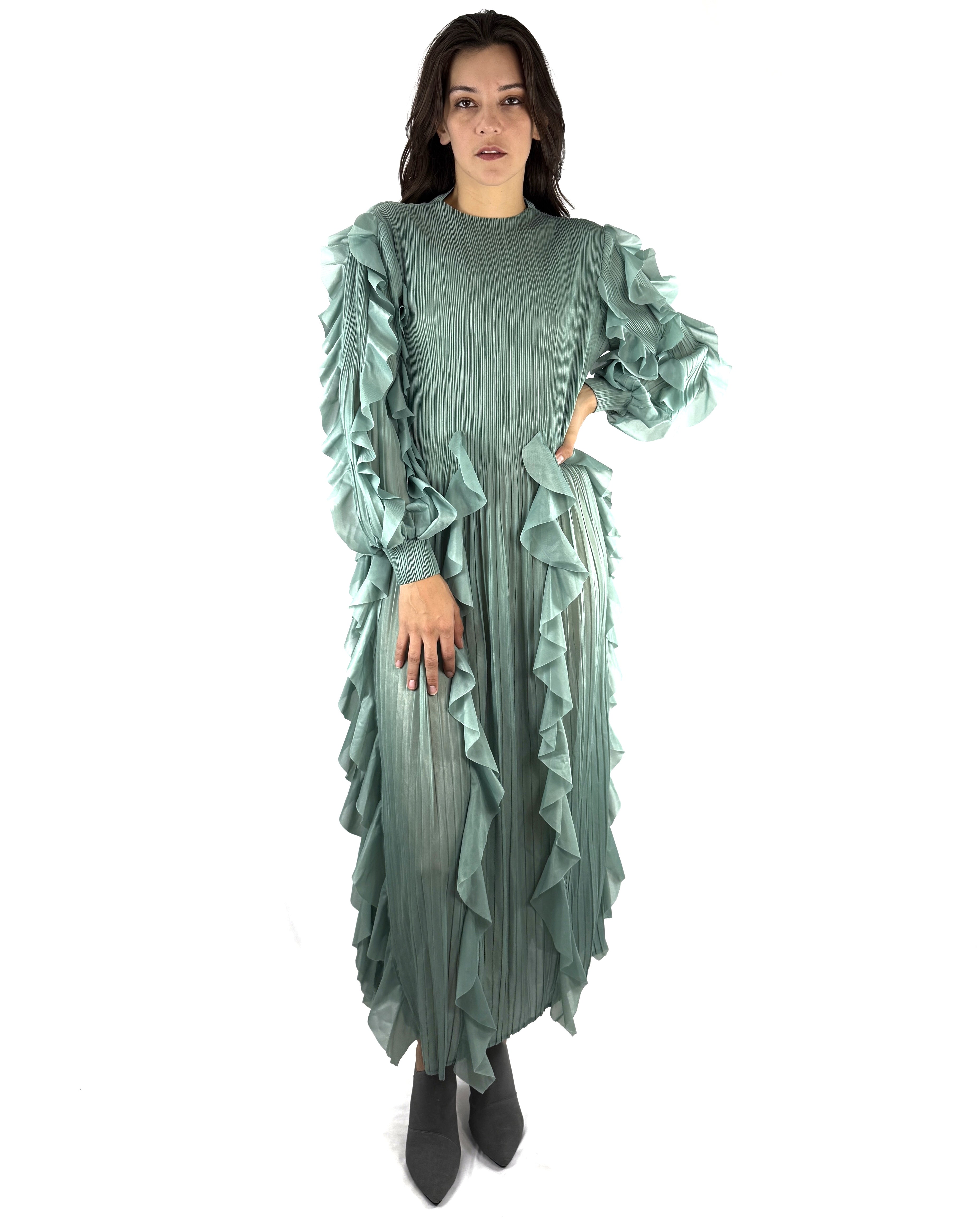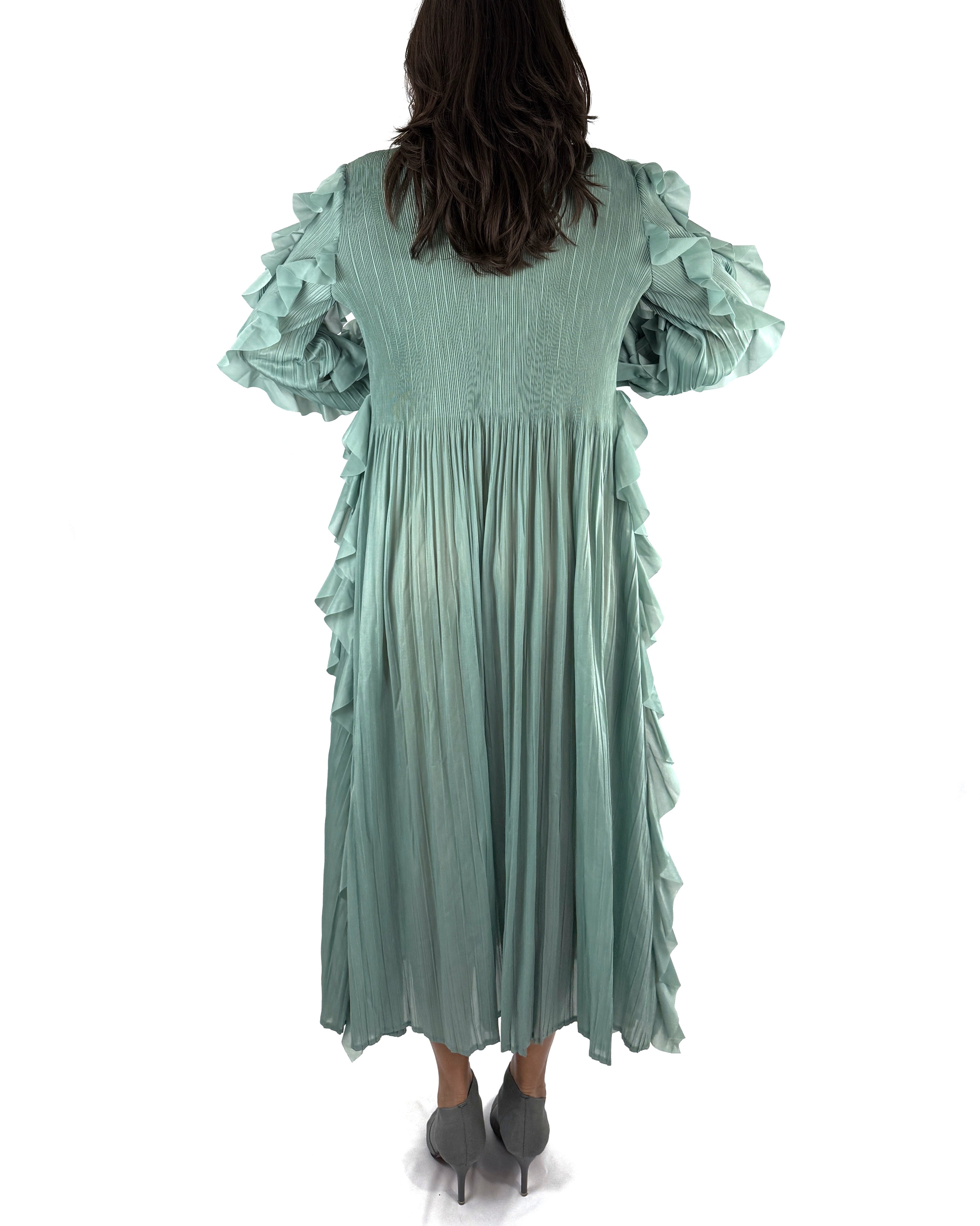 Satin Rive – Vestido azul largo con olanes plisados (UNITALLA)