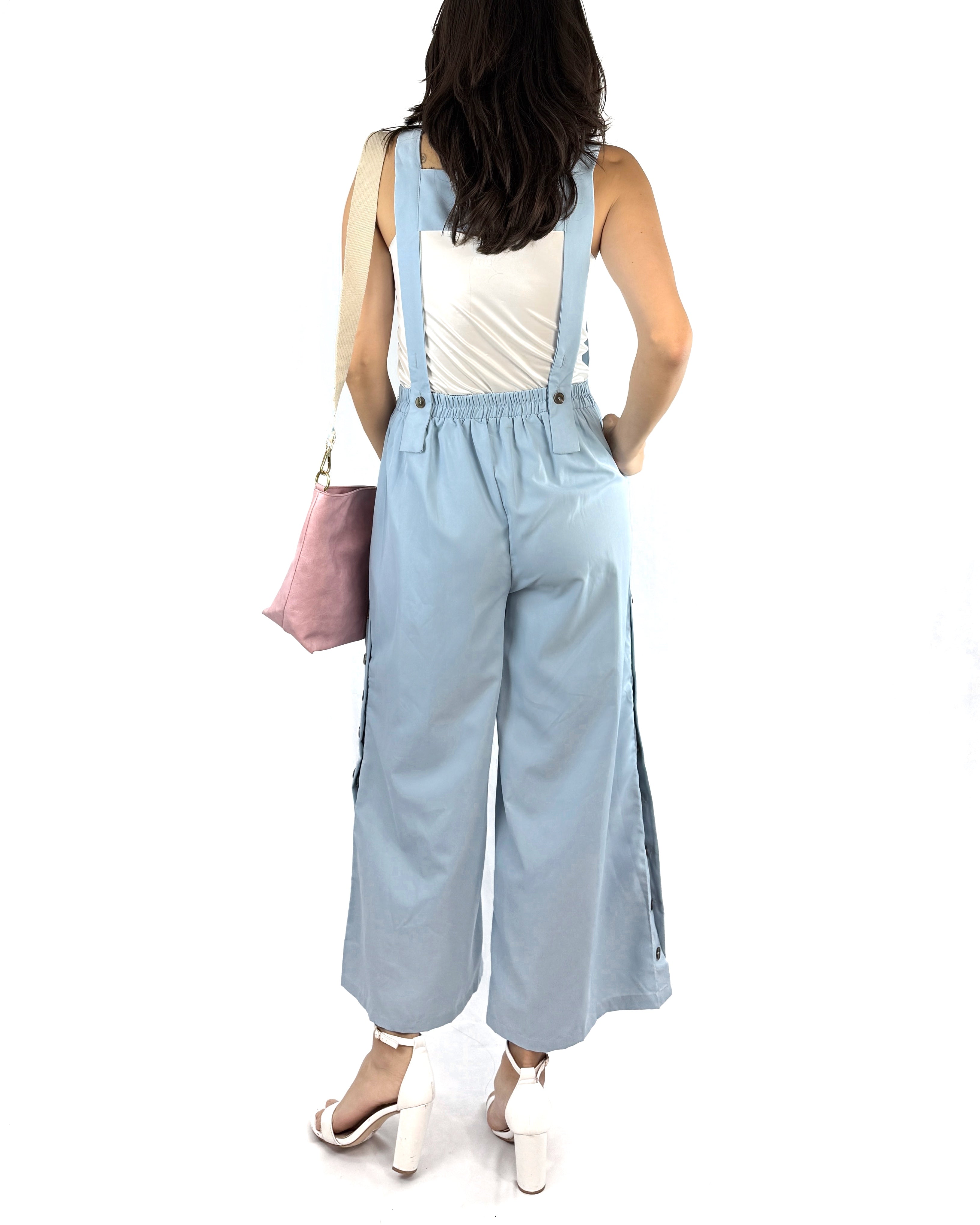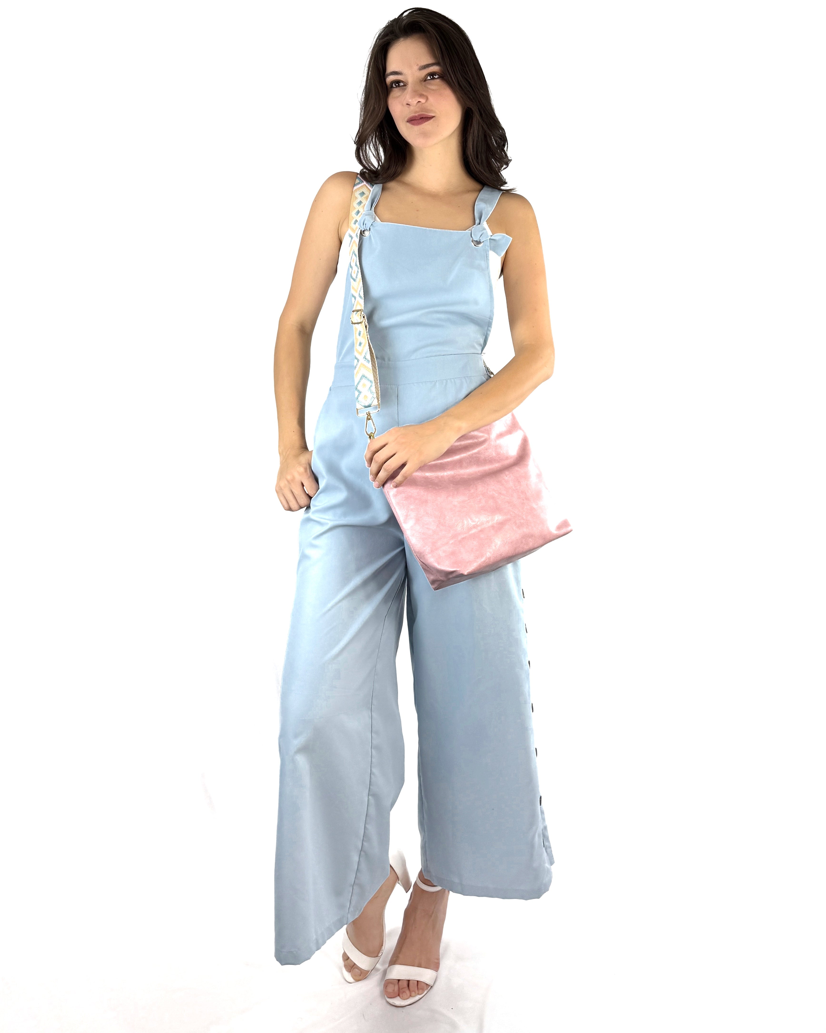 Blue Ease es un overol de tela ligera que combina comodidad y estilo con un diseño relajado y femenino. Su tono azul suave se complementa con botones laterales que añaden un toque casual pero cool. Ideal para looks de día con sandalias o sneakers, o para elevar con tacones y accesorios statement. El fit suelto y los detalles funcionales lo convierten en una pieza práctica, creativa y con mucha actitud.